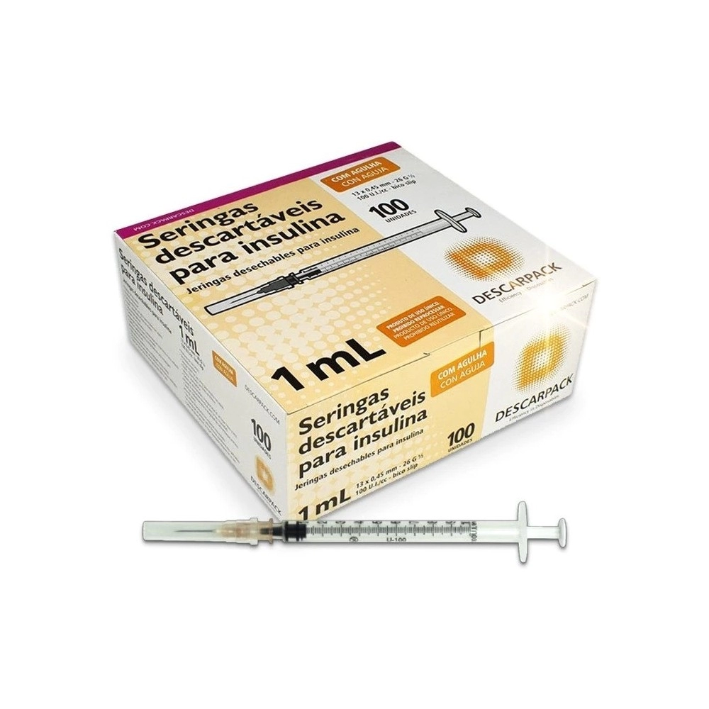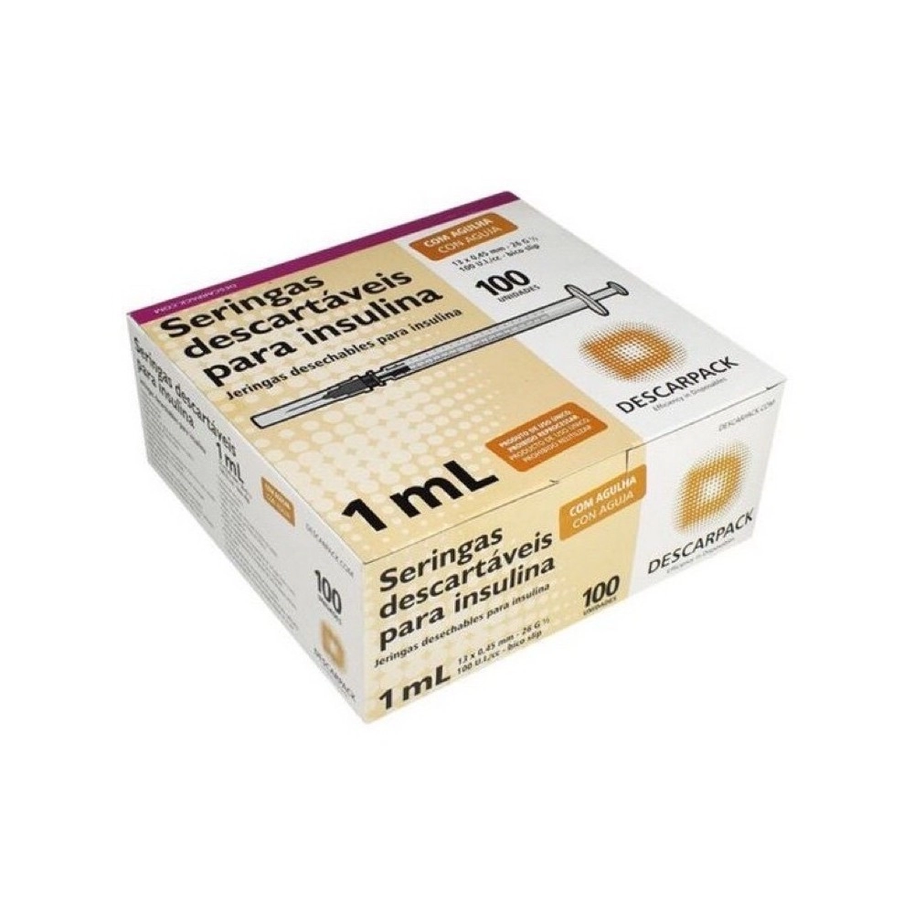 Seringa Descartável 1mL Bico Luer Slip com Agulha 13x0,45mm – Descarpack