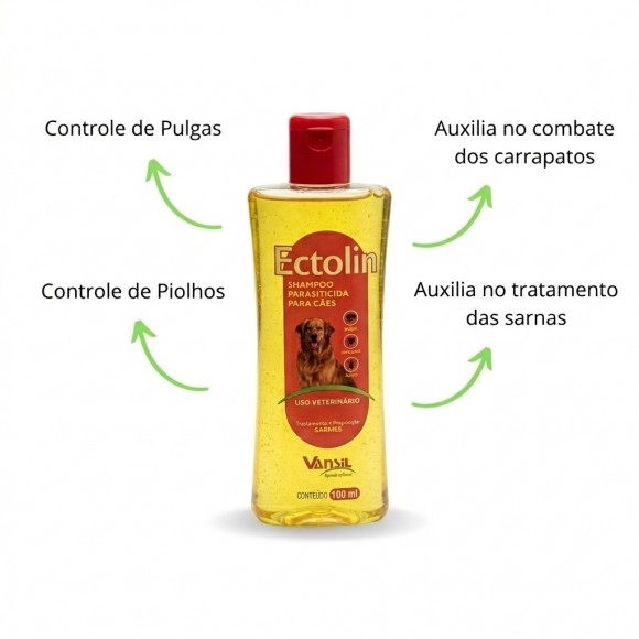 O Ectolin Shampoo Antipulgas 300ml é um eficiente antiparasitário tópico desenvolvido para o controle de pulgas em cães, proporcionando limpeza profunda e proteção durante o banho.
