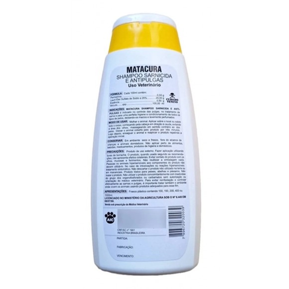 O Shampoo Matacura para Cachorros Agroinca 200ml foi desenvolvido para auxiliar na higiene dos cães, promovendo limpeza eficiente e cuidado especial no combate a pulgas, parasitas externos e sarnas, conforme indicação do fabricante.
