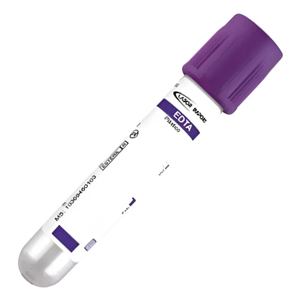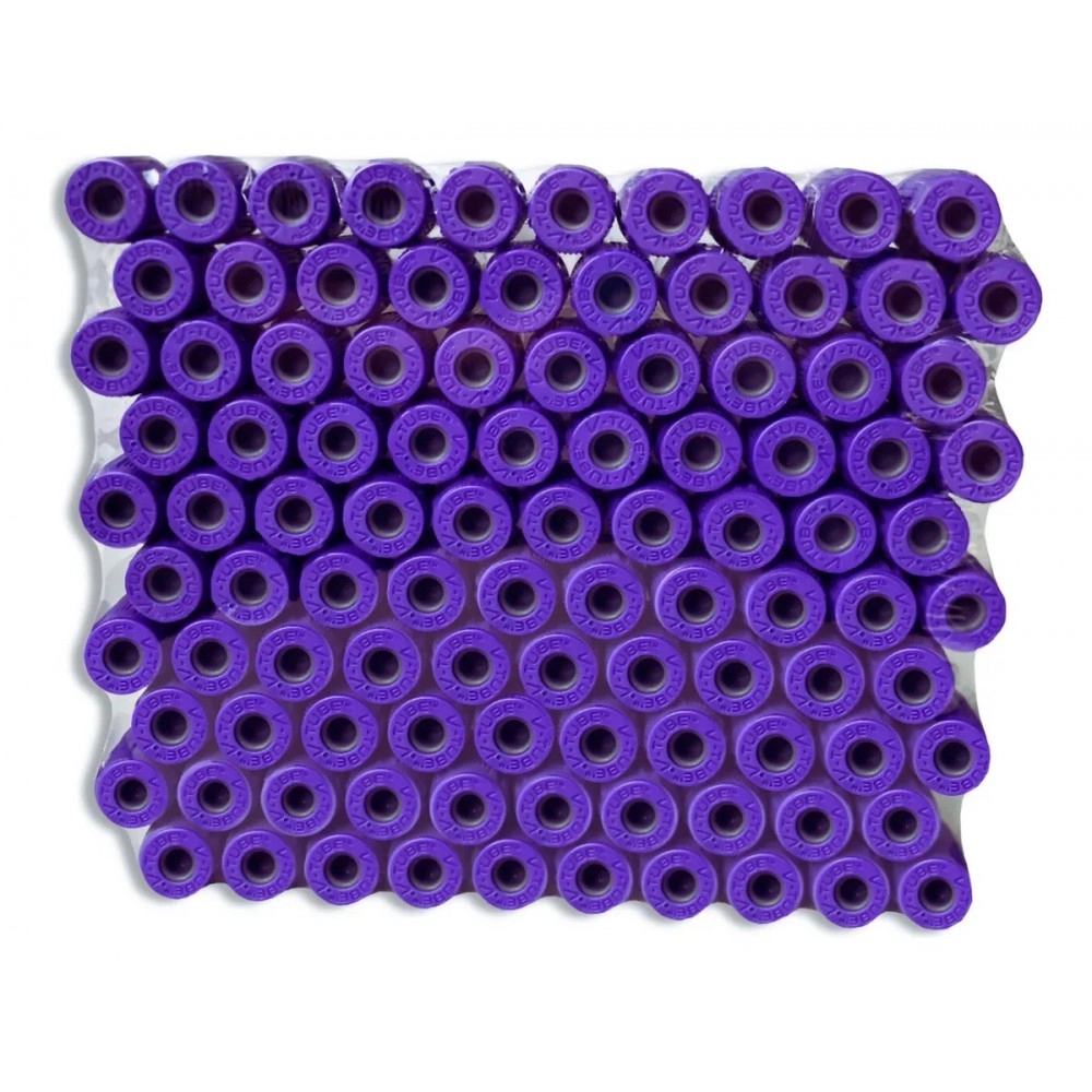 Fabricado em plástico resistente, leve e seguro, o tubo possui tampa roxa de fácil identificação e vácuo calibrado para coleta precisa do volume indicado. É estéril, descartável e de uso único, atendendo às normas laboratoriais e hospitalares.
