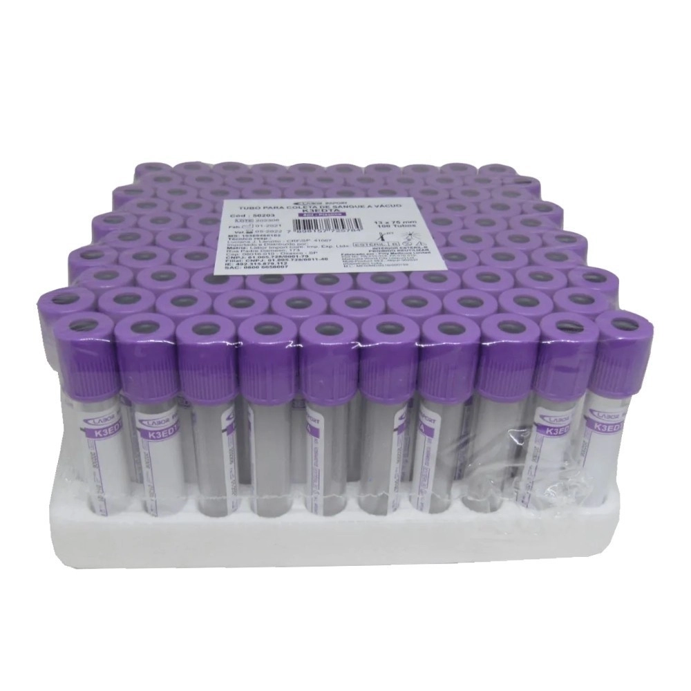 Tubo EDTA K3 Roxo 4mL Coleta de Sangue a Vácuo Plástico Caixa com 100 Unidades – Labor Import