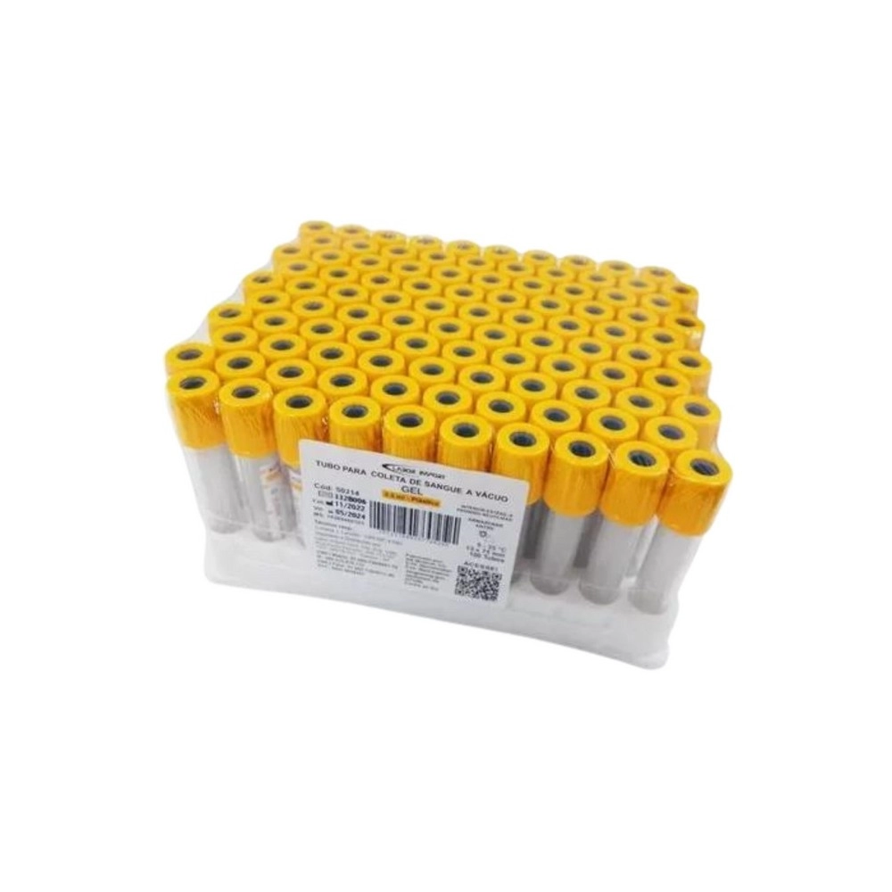 Tubo de Coleta de Sangue com Gel 3,5mL Amarelo – Caixa com 100 Unidades – Labor Import
