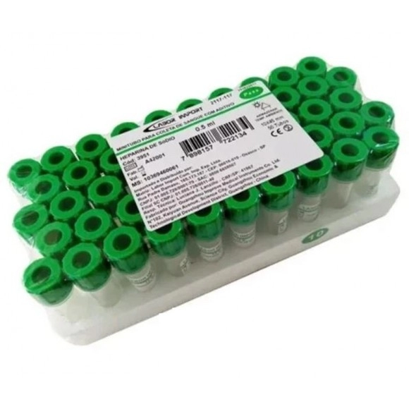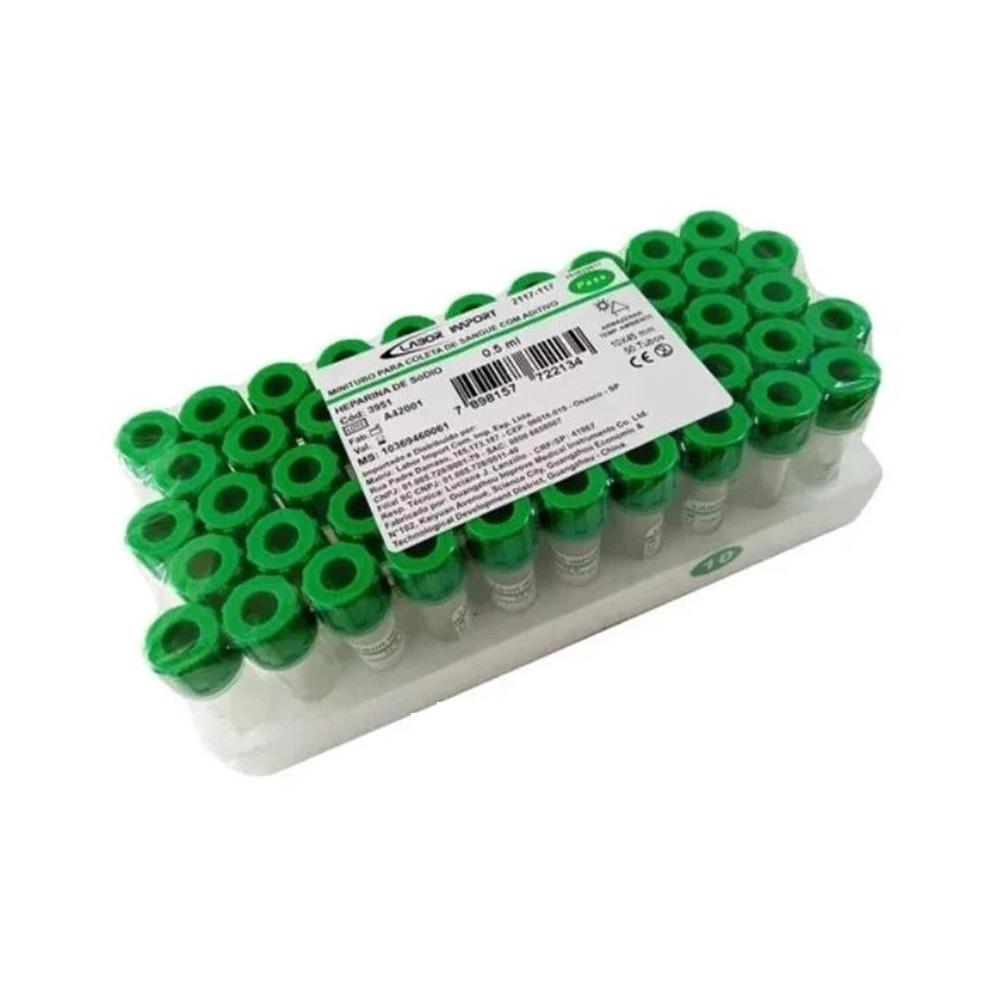 Tubo para Coleta de Sangue com Heparina 0,5ml Verde com 50 Unidades – Labor Import