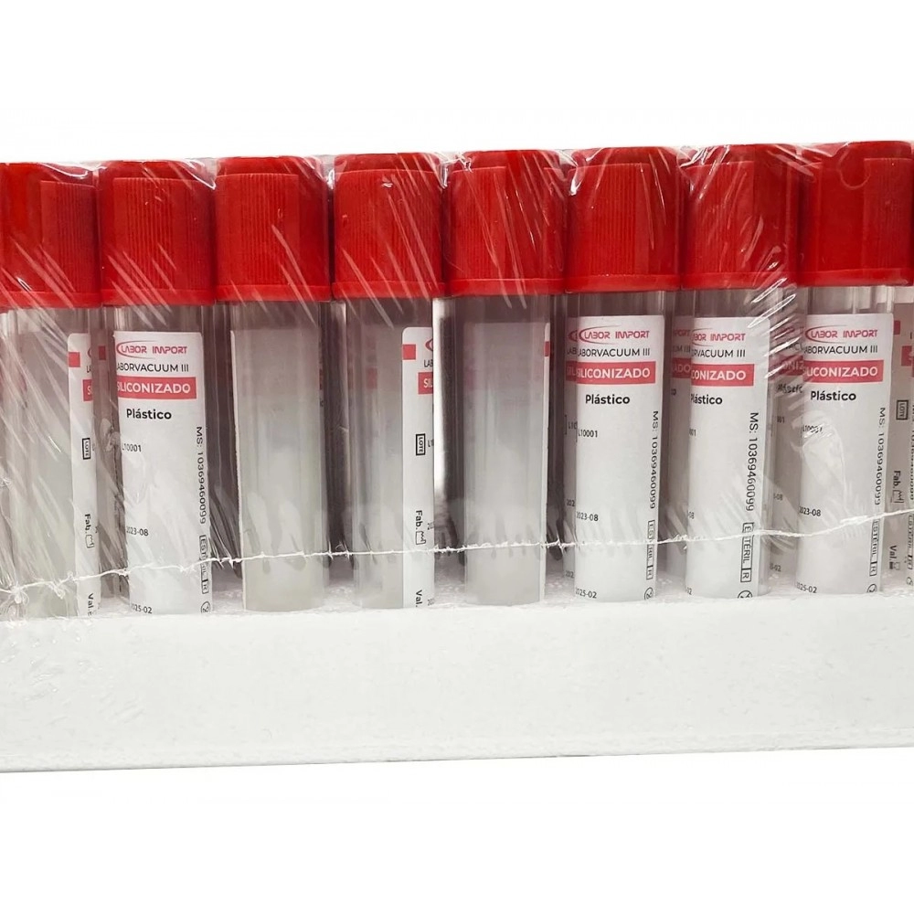 Tubo para Coleta de Sangue Siliconizado 4mL Tampa Vermelha com 100 Unidades – Labor Import