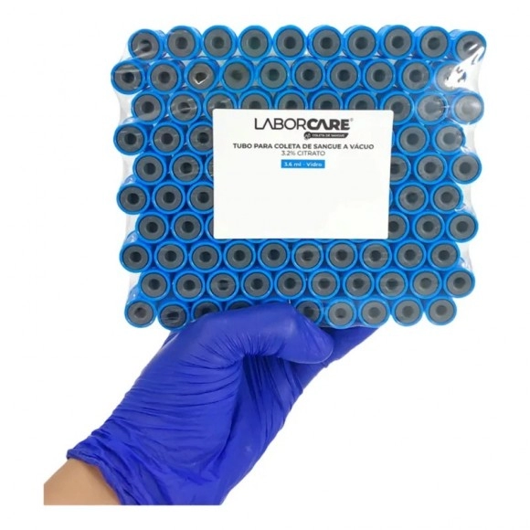 Tubo para Coleta de Sangue Citrato de Sódio 3,2% Azul 3,6ml Caixa com 100 Unidades – Labor Care