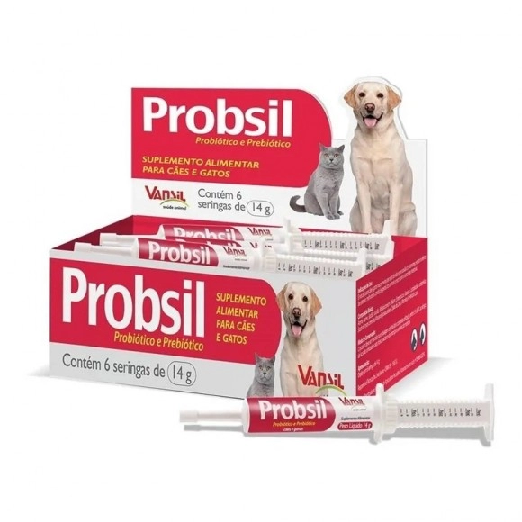 O Probsil Suplemento Alimentar é um suplemento veterinário indicado para auxiliar no equilíbrio da flora intestinal de animais, contribuindo para a saúde digestiva e o bom funcionamento do organismo.