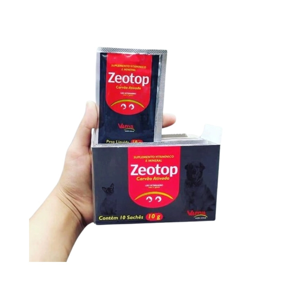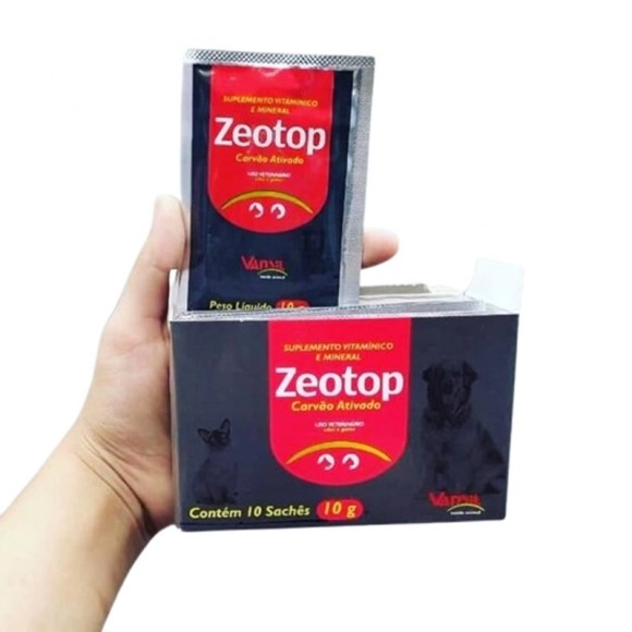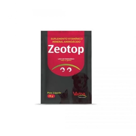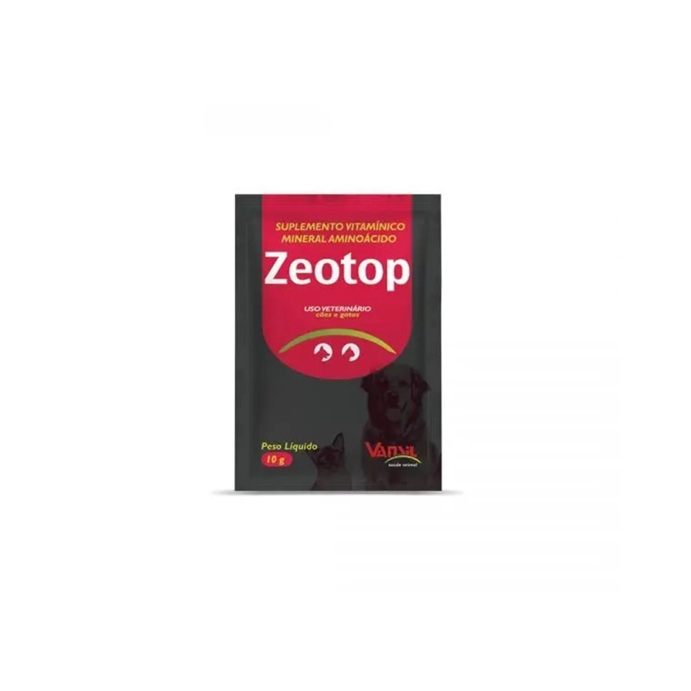 O Zeotop 10g com 10 sachês é um suplemento vitamínico, mineral e aminoácido indicado para auxiliar na reposição nutricional e no equilíbrio do organismo dos animais, contribuindo para mais saúde, desempenho e bem-estar.
